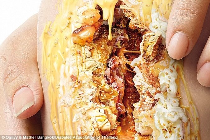 Créé par l'Association du diabète de la Thaïlande, la campagne a été lancée pour sensibiliser les complications peu connus de diabète de type 2 avec des bonbons, des colorants, du sucre et de la confiture, les concepteurs de l'agence Ogilvy Bangkok ont réussi à créer des images très réalistes représentants plaies suintantes.